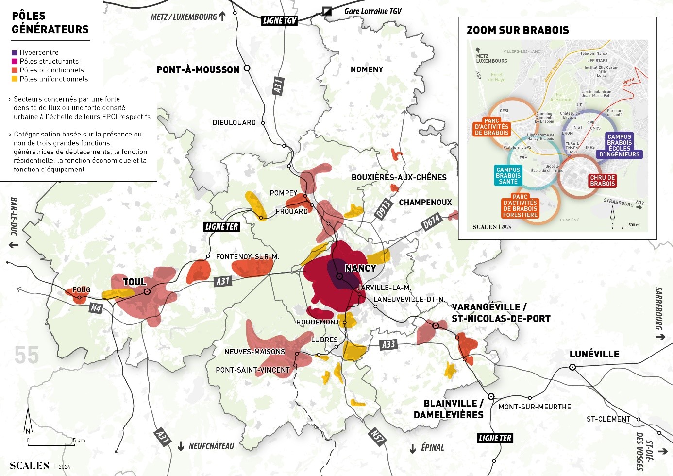 Ces axes ont été précisés par des propositions d’actions et différents scénarii s’attachant à mettre en lumière de nouveaux points de passage vers la Métropole, les estimations tarifaires et la définition d’une méthode pour mener à bien ce projet. Les avancées de cette démarche conjointe des parties prenantes a permis de nourrir de manière cohérente leur contribution aux réflexions d’échelles plus larges en cours au sein du GIP Grand Nancy Sud 54 et à l’occasion de l’élaboration du SERM.